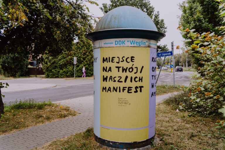 MANIFESTY DLA PRZYSZŁOŚCI to kontynuacja projektu o tym samym tytule, który był realizowany w 2021 roku w Dzielnicowym Domu Kultury „Węglin” w Lublinie. Miał on formę siedmiu realizacji (Manifestów) eksponowanych na słupie przed domem kultury, który w tamtych, pandemicznych, warunkach był jednym z możliwych sposobów komunikacji z mieszkańcami dzielnicy. Zadawaliśmy wtedy pytania o rolę artysty, odbiorcy i instytucji kultury w zmieniającej się rzeczywistości. Tymczasem, patrząc z dzisiejszej perspektywy na rok 2021, znaleźliśmy się w przyszłości. Jak zatem ona wygląda? Jakie są wyzwania, które stoją przed nami i czy są one tak różne od tych sprzed trzech/czterech lat?